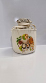 کیسه خشکبار دستدوز ایران با ترکیب متقال کتان ضخیم در لایه بیرونی و آستری کتان چهارخونه کرم–قهوهای در لایه داخلی ساخته شده است؛ آستریای که لک را نشان نمیدهد و همیشه ظاهر کیسه را تمیز نگه میدارد.