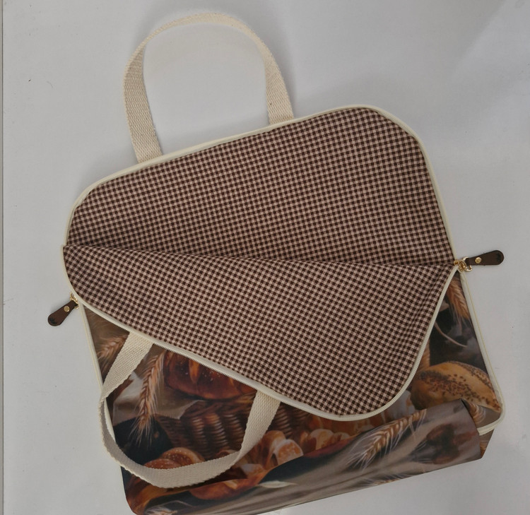 داخل آن با آستری کتان نخ چهارخونه قهوهای دوخته شده تا از لک، سیاهی و کثیف شدن نان جلوگیری شود.
